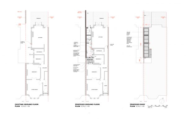 Our proposed design has a contemporary approach, maximising natural light into the dwelling whilst controlling views and excessive solar heat gain with external louvre to the upper glazed area of the frontage. The dwelling will have double aspects to the front and rear, as well as rooflights, creating a light and airy living space. Despite the size constrains of the site, we have also been able to create a small front garden, which will be connected with the front room through sliding doors, creating fluent indoor – outdoor living.