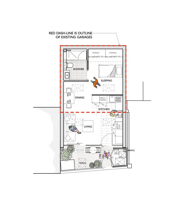 In November 2018, HUB was approached by a private client to extend and convert two 300 square foot garages into a studio dwelling. Working with the client we have established a design that is retaining the character of the existing 20th century garage buildings by extending the same duo-pitched roof form, creating a self-contained 400 square foot living accommodation.